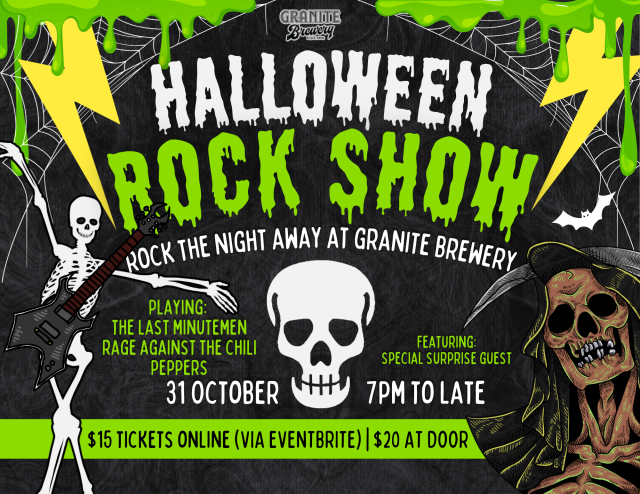 Get ready to rock the night away at Granite’s spookiest show of the year! Live bands, cold brews, and killer vibes all night long.