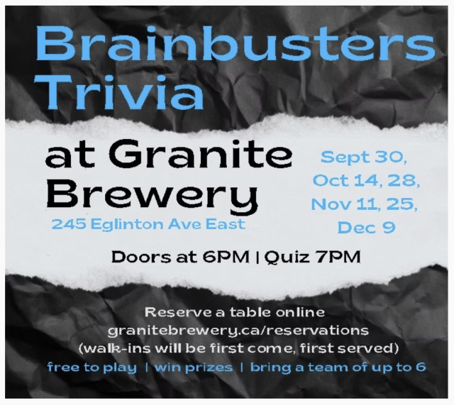 Test your knowledge of general trivia with Brainbusters! Two Tuesdays a month. Prizes will be awarded to the top 2 teams. Click the link above or visit our website for a seat!